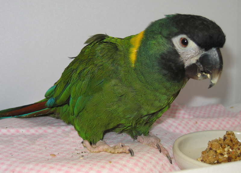 Hi! Fortuna, the little Yellow Collar Macaw that was attacked by the hawk, is recovering despite a hole in his thorax, which allows air to leak out. This will heal. "Tuna's" vet has suggested he might move to a home setting in the next day or so and I would like very much to find a home in the South Bay or San Mateo County, where he can continue a relationship with his current vet in Sunnyvale or one of the other vets nearby. I've attached a picture of this cutie. If you can help please contact me privately.