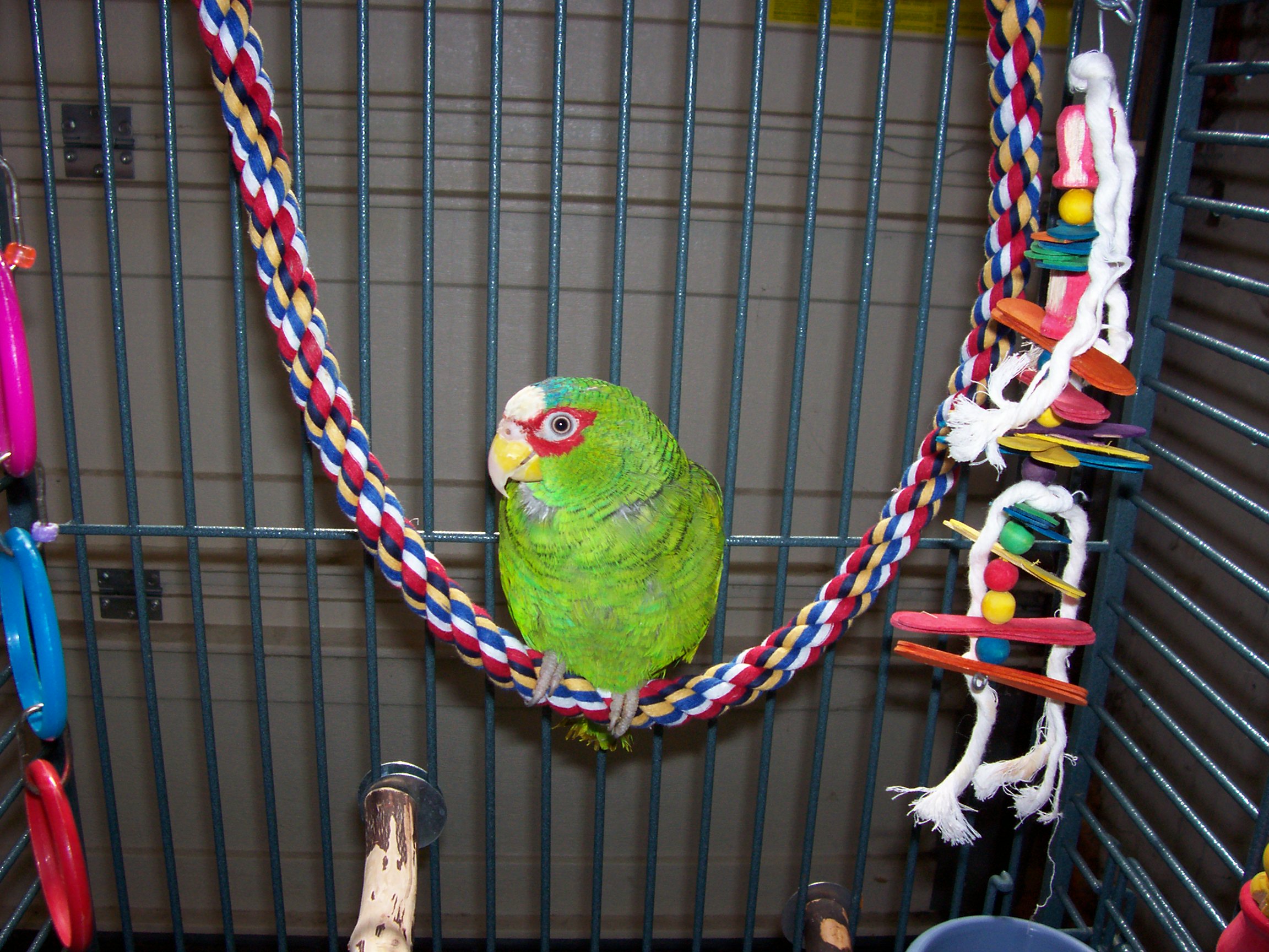 We have a White Front Amazon named "Marty" (see attached picture) who really needs a foster home. He is the smallest of the amazon species and makes a raspy contact call (like a strangled duck).