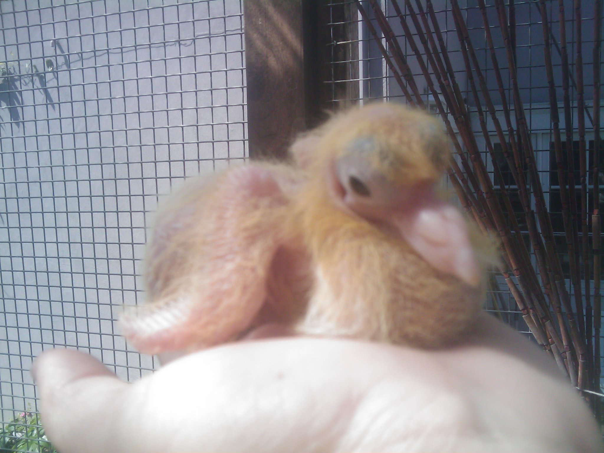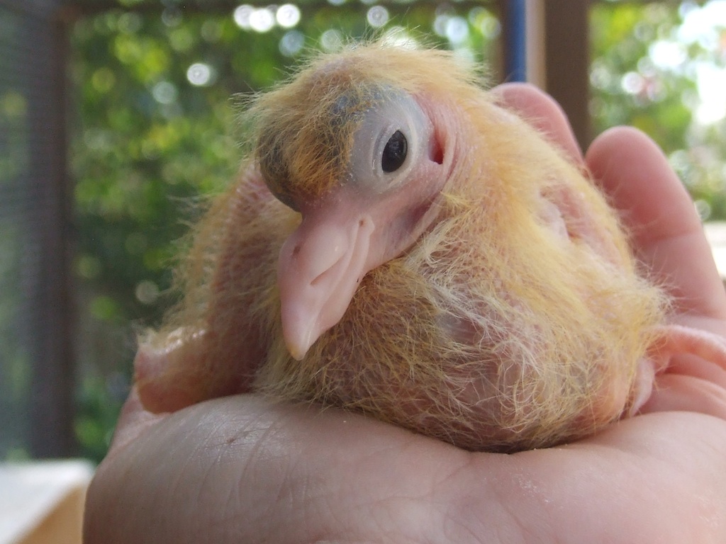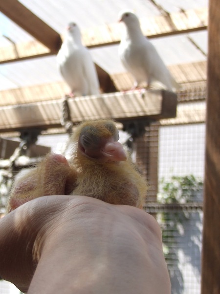 This baby king pigeon hatched 3/21 at the Wulf foster aviary. It is only the