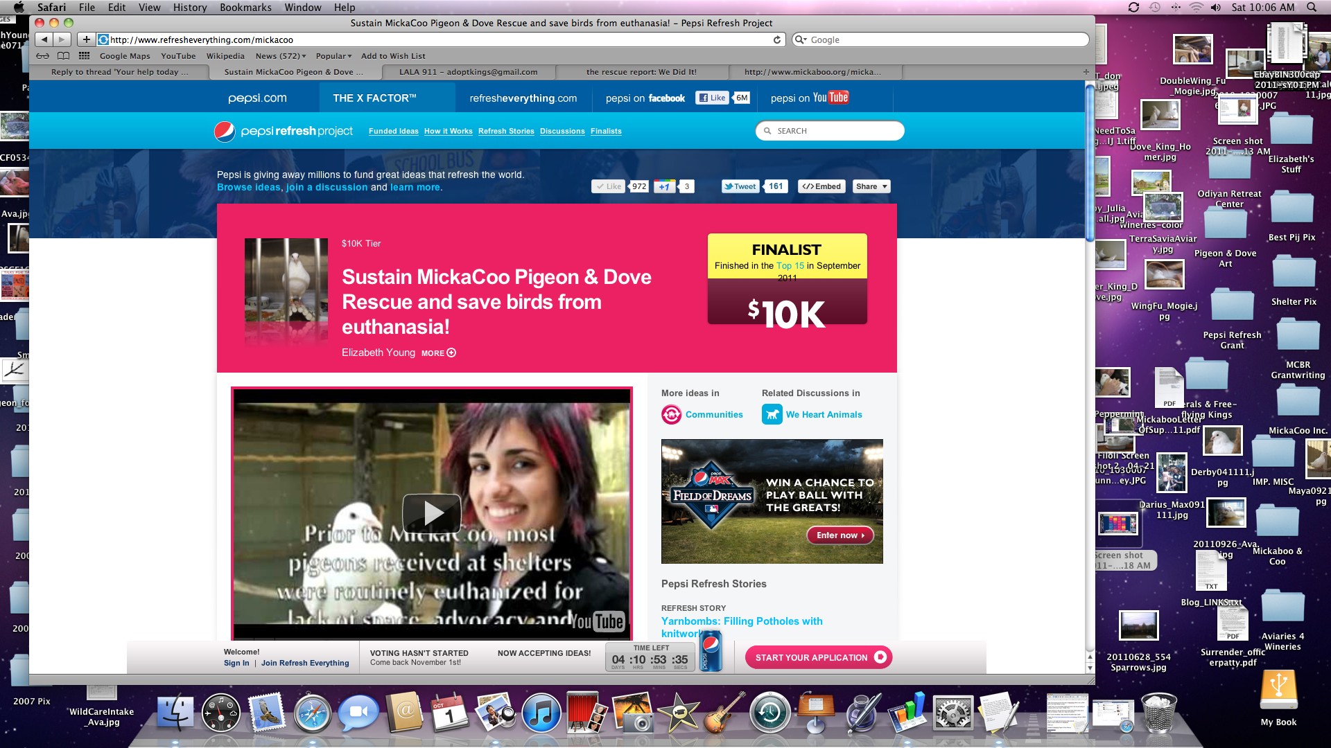 Today is a proud day for pigeons and doves in need of rescue- not the winners of races nor carriers of messages- just humble kings, lost rollers, the injured and stray. They received a TON of support from all over the world - just because they need a helping hand, as so many of us sometimes do. -- Elizabeth * * *We did it! Thank you!* Until they all have homes, don't buy, don't breed- adopt. www.RescueReport.org www.MickaCoo.org http://www.youtube.com/watch?v=QGjyooh3Yo0