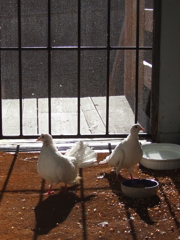 These two birds are not yet named (suggestions are welcome). The homer on the left has a granuloma and the fantail on the right will need some rehab to get healthy and strong. Genders are unknown and they are more roommates than married. Twelve pigeons were surrendered to Marin Humane Society and, with the help of MickaCoo volunteer Shae and transport assistance from WildCare staffer Kelle, MickaCoo took four frail ones into foster care.