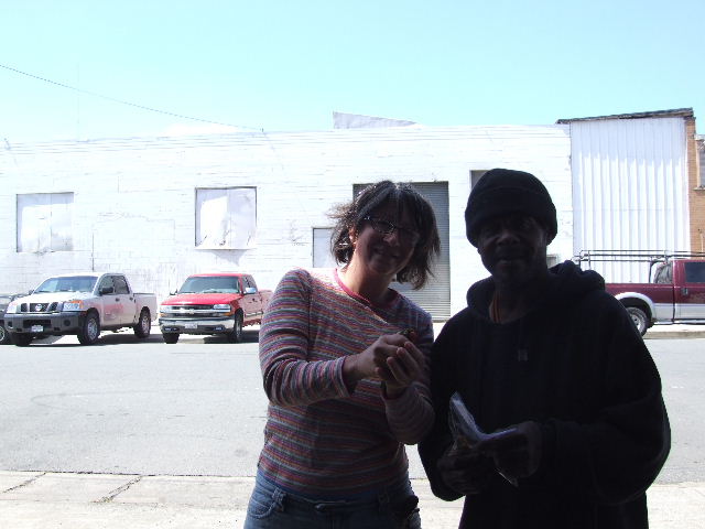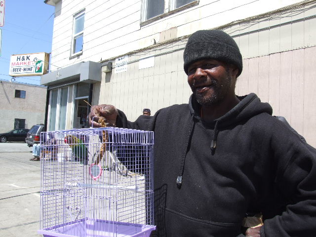 Hello- You know me- I just have to share this! 20 minutes ago, I got a call from a man named Randy about a "green bird with a red beak" that he found. (The flyers for my lost budgie Bodie are still up in spots throughout my neighborhood.) I grabbed a couple of nets and towels and a cage and drove the 4 blocks to where he was at. Randy had seen this bird and his coworkers wanted to try and catch it with a rake but he knew that would just "tear it up" so he cornered it and put his sweatshirt over it. It worked beautifully because the bird was right where he left it when we got there. I asked Randy to name the bird and he did- Tweety. I told him that if there's a reward for reuniting it with her owner, he'll get it. He's homeless but Tweety no longer is. -- Elizabeth Until they all have homes, don't buy, don't breed- adopt. www.RescueReport.org www.MickaCoo.org http://www.youtube.com/watch?v=QGjyooh3Yo0