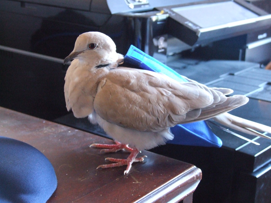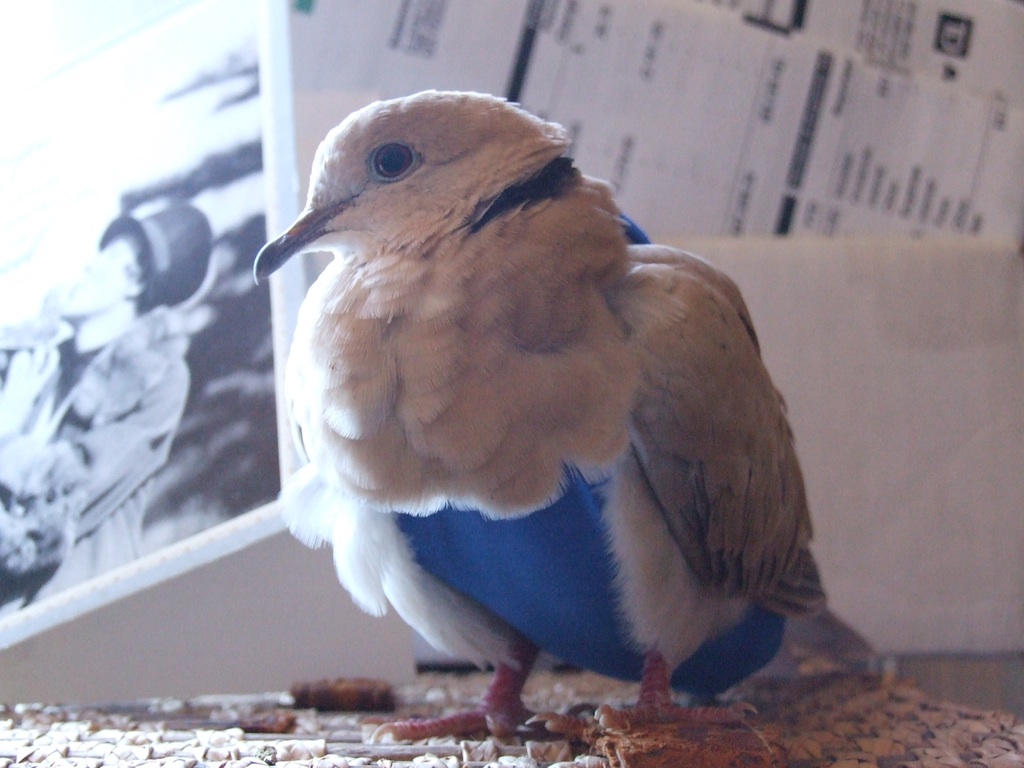 Hello! I ordered a Flight Suit for Lily the dove and it fits and works fine but is a little over-whelming in its design (mainly in the massive pieces of velcro used for the suit and the lanyard leash), me and Lily think. We'd like to go with something a little less obtrusive and I'm wondering if anybody has an unused Feather Tether or Aviator Harness that we could try. According to their websites, Lily the ringneck dove (144g) would fit in either- Aviator in size: extra small Feather Tether in size: small Thanks! Elizabeth * * *Please vote for Mickaboo at http://www.refresheverything.com/mickaboo everyday in July. Thank you! * * * Until they all have homes, don't buy, don't breed- adopt. www.RescueReport.org www.MickaCoo.org http://www.youtube.com/watch?v=QGjyooh3Yo0