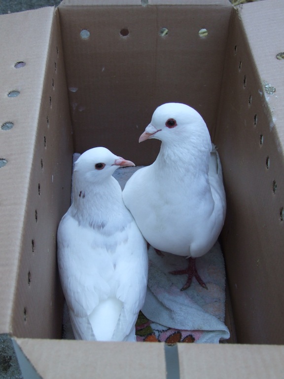I wanted to share a lot of happy news with you- we've placed TWELVE birds in four wonderful adopters' homes this weekend. New adopter Marsha of Santa Cruz adopted eight pigeons- Price & Pippie, Paco & Lenny, Miles & Macy and Teddy & Chase. And Marsha has joined our Discussion Group. Catherine of El Cerrito, adopter of Tina & Tony and initiator of our Pepsi grant, has added doves Sammy & Brigid (formerly Cassie) to her family flock. Barna adopted Scooter after the Wulf's played match-maker by hosting lonely hen Skyscraper with their fosters. and Jasen adopted Picasso after the Wulf's also played match-maker for bachelor Truffles. Here's a couple pictures... and don't worry! There are PLENTY more available for adoption! 8 ] -- Elizabeth *PLEASE vote for Mickaboo & 'Coo Bird Rescues today **& every day* *this month to help us win a MUCH needed $50K grant! * **www.refresheverything.c om/mickaboobirdrescue Until they all have homes, don't buy, don't breed- adopt. www.RescueReport.org www.MickaCoo.org http://www.youtube.com/watch?v=QGjyooh3Yo0
