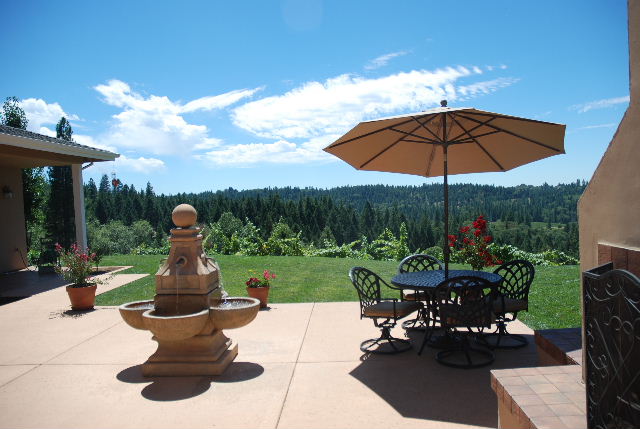 (or photo-shopped image) that shows a winery patio with a guest in the