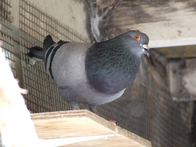 pigeon. He's an SF blue bar feral that had a head and eye injury and was
