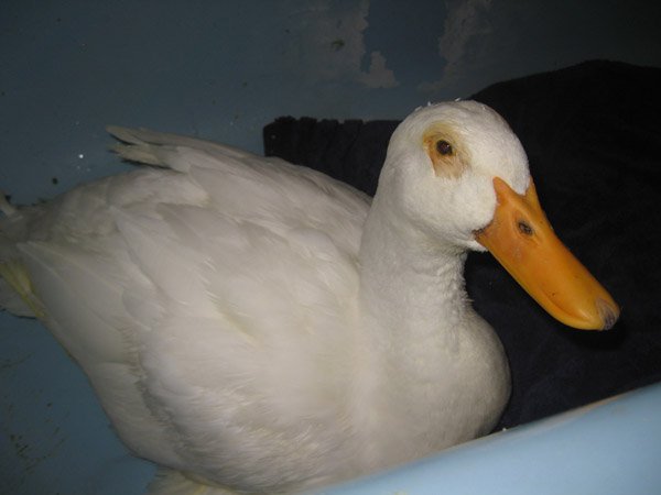 Does anyone know of someone or a vet that can help this duck in or around Morgan Hill? If you can help reply all to this email and ask Terry for the contact info. Updates from Facebook below and picture attached: Domestic duck rescuer needed in/near Morgan Hill CA. Anybody know of a group or individual that could take in a needy male Pekin? Duck is very thin and has an injured or perhaps foot/ankle deformity.Have just posted pictures of the duck in Morgan Hill that needs some help and a place to go. I have asked the young lady who rescued him to send me her phone # so we can move quickly if a place is found for this Pekin duck. Thank you all for helping with finding a place for him. ____________________________________________________________ Cheryl A Reiki Master - www.cheryldickinson.com A MickaCoo Volunteer - www.MickaCoo.org A King Pigeon Rescuer - http://cheryldickinson.com/kings.htm