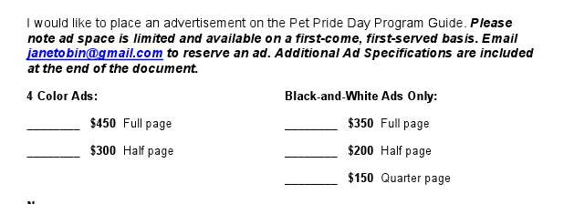 Seeking Donations & Ad Designer to Purchase an Ad in the Pet Pride Day Souvenir Program
