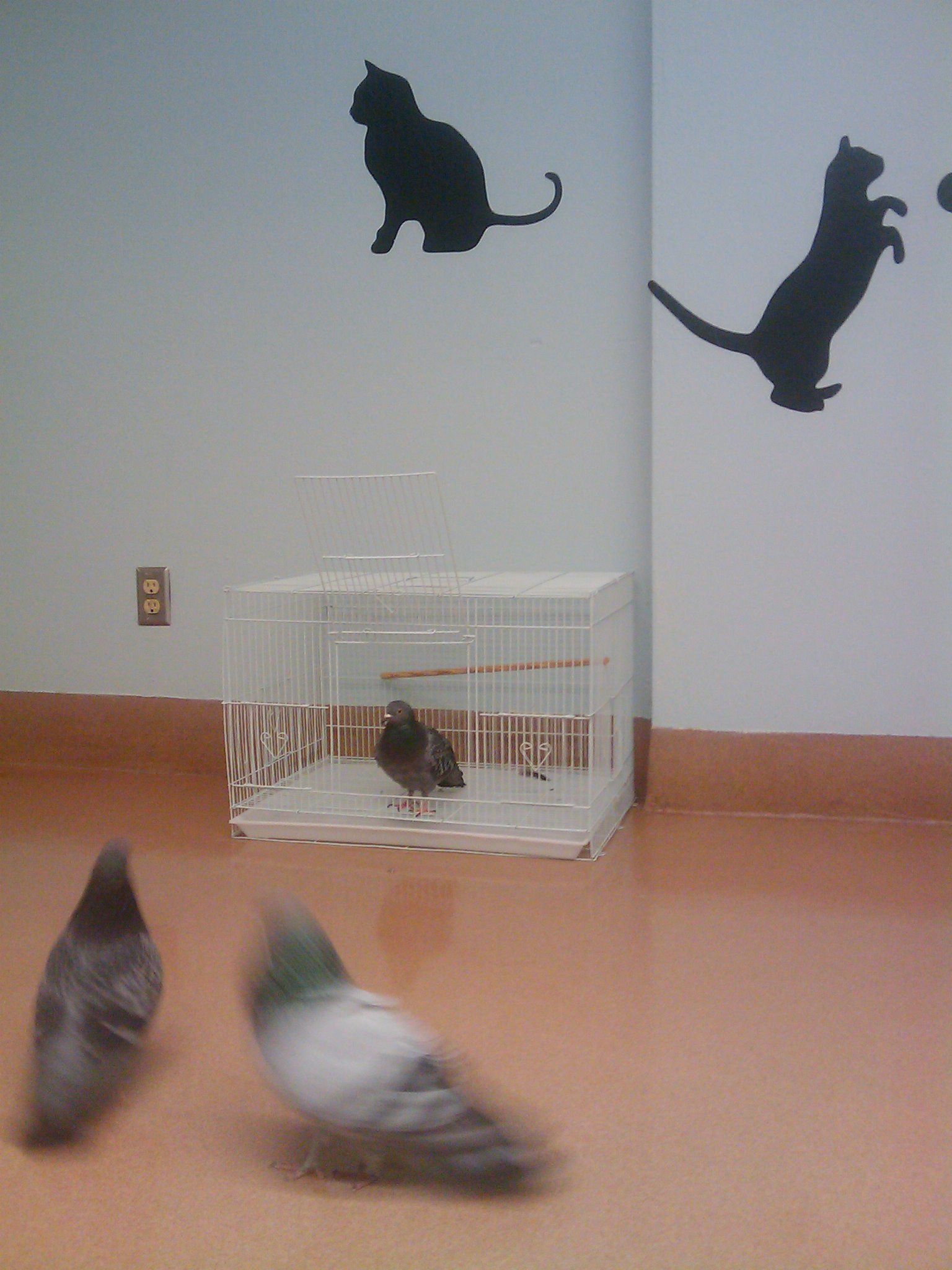 I'm at SFACC assessing the needs/people-skills of 3 ten-year old owner-surrendered pigeons.
