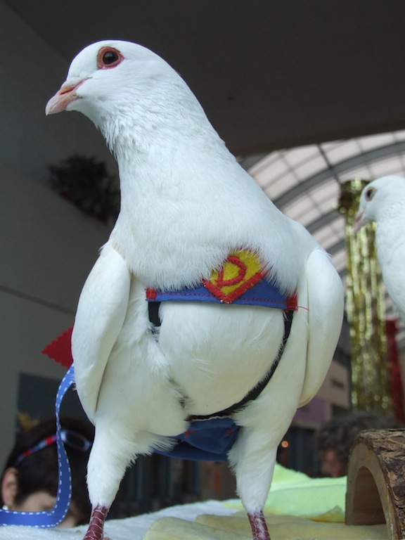 SUPER Dovee is MickaCoo SUPER adopter/volunteer Cheryl's rescued pigeon as