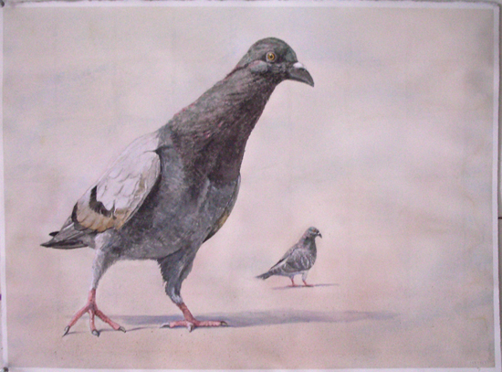 Patty Blau is one of the more artistic talents in the Mickaboo family. Attached are three watercolors of pigeons, inspired by what she saw on the steps of the New York Public Library on a recent visit. We would like your opinion…