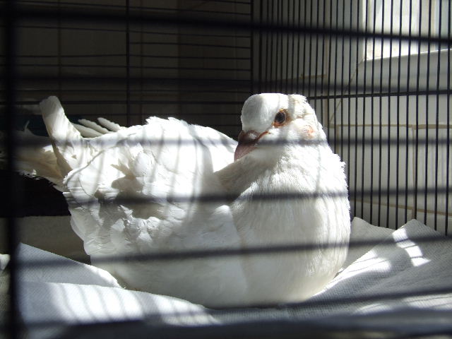 Hello- Sweet old lady foster king pigeon Dee Dee Detroit has been trying to keep up with her young mate (Peppermint) and all the pigeon folks out in my coop but her advanced age and arthritic knees and weakening heart have drawn those days to a close. Until I can find her the right spot, she's stuck in my (overfull) house in a cage that really isn't quite as dignified as she'd like. She really needs a nice, quiet, pigeon retirement/foster home. And, while she can't be with her mate any more, there is an old lady pigeon by the name of Louie that would also enjoy getting out of the hustle and bustle and into a nice, quiet, sunny foster home and together, they would be happy and safe and enjoy each others' company. MickaCoo even has a nice, big, predator & weather proof flight cage that you could house these two sweet old gals in. It's 8' long, 6' high and 4' feet wide and, with just these two quiet, dignified ladies in it, would be VERY easy to care for. They don't HAVE to live in this cage nor do they have to live outside. But they do need enough space to stretch their old muscles and some sunshine and fresh air. Can you help them and me? We would REALLY appreciate it. Consider this an URGENT request. Reply to AdoptKings@gmail.com Thank you! Elizabeth -- Elizabeth Until they all have homes, don't buy, don't breed- adopt. www.RescueReport.org www.MickaCoo.org http://www.youtube.com/watch?v=QGjyooh3Yo0