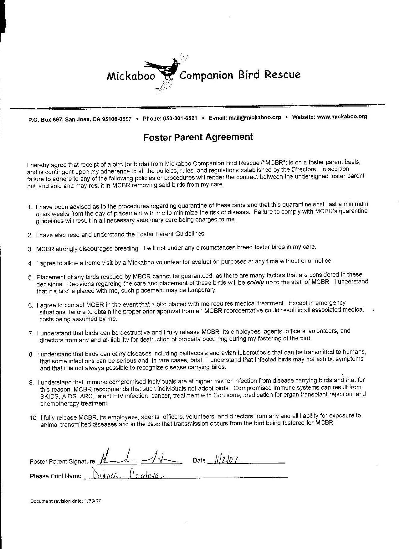Subject: [Mickaboo Techlist] Fwd: Foster Agreement