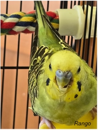 Rango, believed to be a found bird, had his own unique challenge. His upper beak was damaged, leaving him with only half. As a result, his lower beak grew unevenly and needed frequent shaping by the vet so that, with time, his beak could realign. Despite this, Rango adapted to a normal cage setup and was making progress under Peggy’s care until he died of a cardiac arrest.